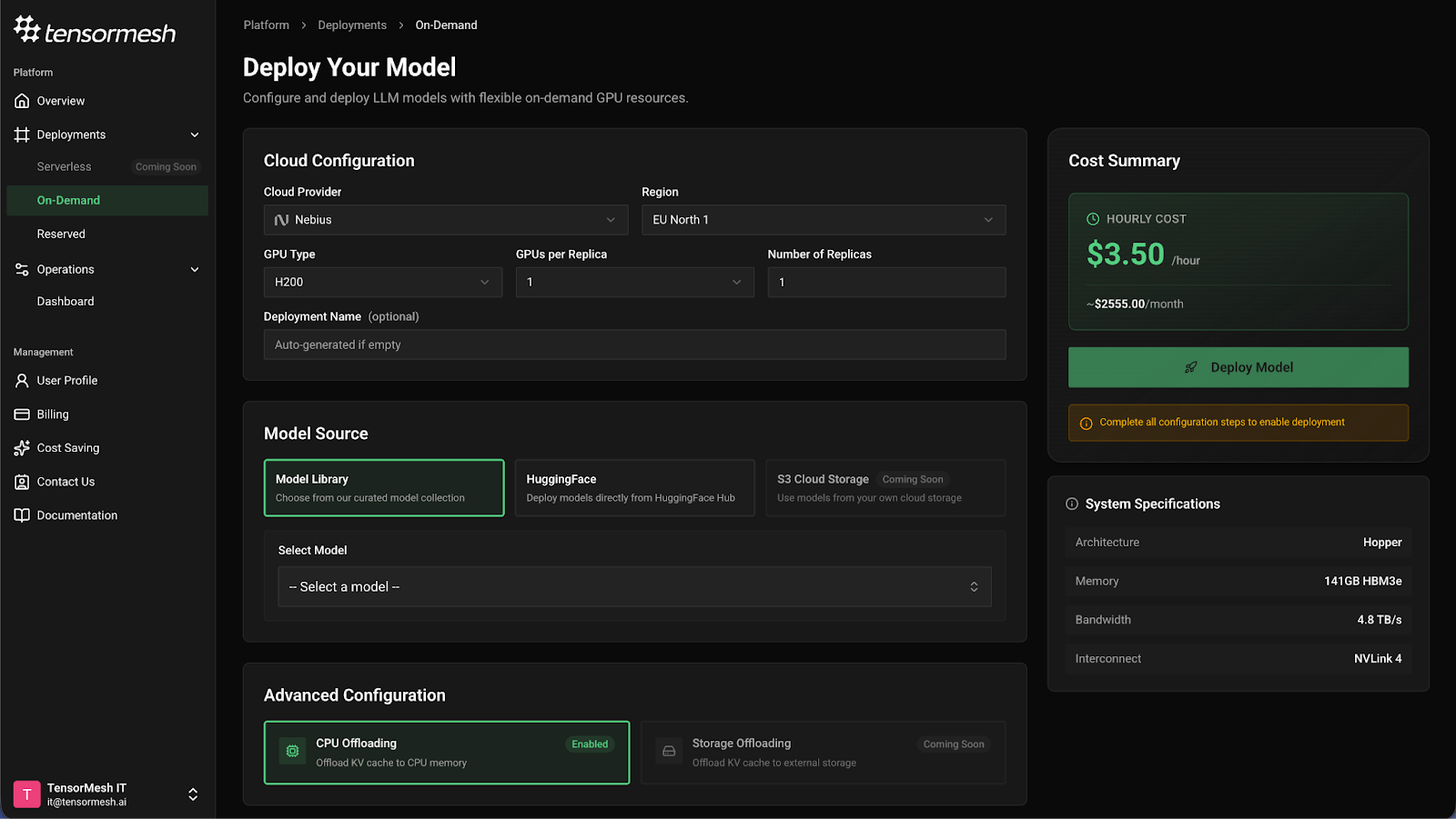 The deployment process is now intuitive and fast. Select your GPU provider, choose your model, configure advanced settings if needed, and deploy. No more navigating through multiple screens or complex configuration steps.