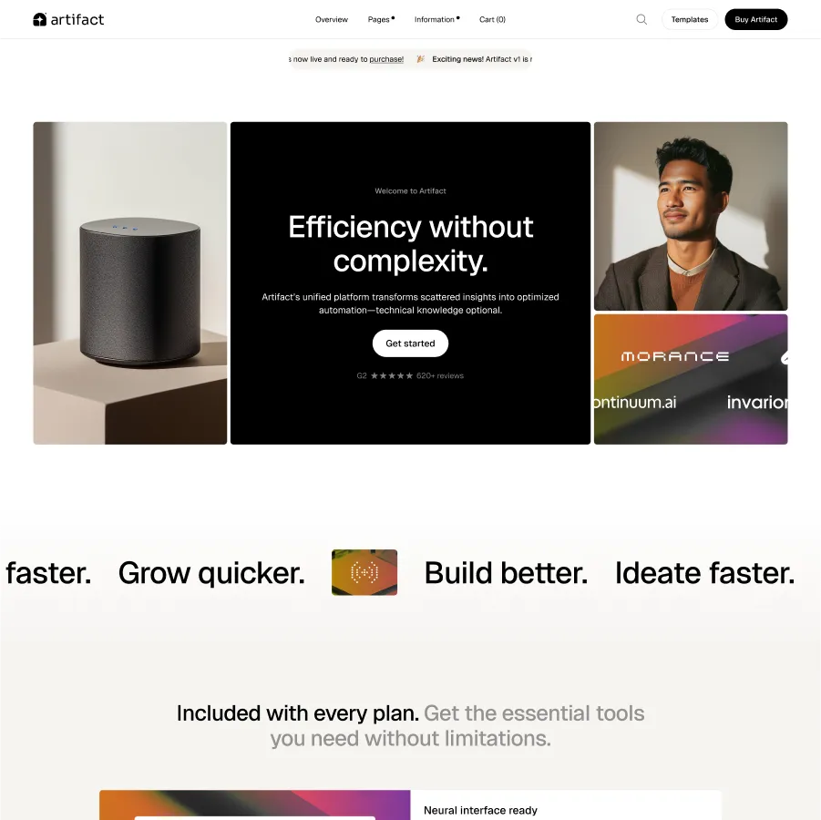 Artifact is brimming with premium layouts and sections designed with true purpose.